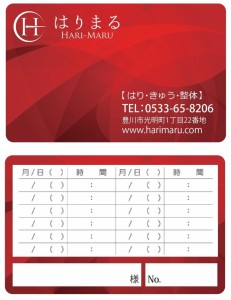 住所の上に「はり・きゅう・整体」を入れるかどうか迷いましたが、何の店かわからないのもどうかな~と思い、入れることにしました。