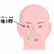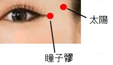 近くのツボ、四白(しはく)、太陽(たいよう)とセットでやると効果アップ♪(^^。