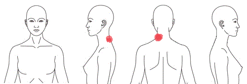 首の痛み。一か月前に仕事が変わり、ずっと下を向いていることが多くなって首がだんだん痛くなった。左の首の付け根辺りが痛くて左右どちらとも真横まで向くことができない。どちらかというと右を向いた時の方が痛い。真上を向こうとしたときも同じところが痛む。肩こり、頭痛持ちだが来院時に頭痛は無かった。