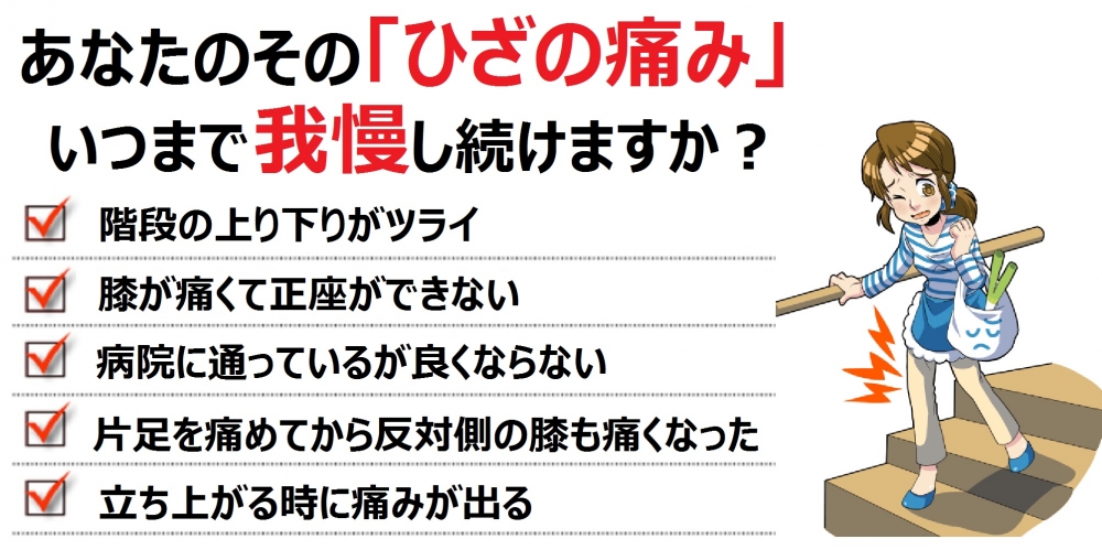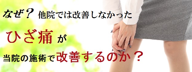 治すためには、ひざ痛を引き起こしている原因にアプローチしなければなりません。原因が消えると、局所的な治療では、得ることができない爽快感を味わうことができます。