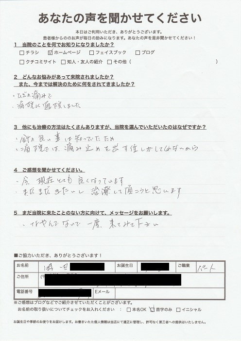 ひざの痛みで来院しました。今までは病院に通院していました。